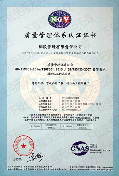銅陵?duì)I造有限責(zé)任公司是國(guó)家住建部核準(zhǔn)的房屋建筑總承包一級(jí)企業(yè)。2006年7月,企業(yè)二次改制為民營(yíng)企業(yè),并更名為“銅陵?duì)I造有限責(zé)任公司”。目前,公司擁有房建施工總承包、市政公用工程總承包、鋼結(jié)構(gòu)專業(yè)工程承包、建筑裝修裝飾專業(yè)工程承包四項(xiàng)壹級(jí)資質(zhì),機(jī)電安裝、起重設(shè)備安裝、建筑幕墻三項(xiàng)貳級(jí)資質(zhì),地基與基礎(chǔ)一項(xiàng)叁級(jí)資質(zhì)。2008年通過北京恩格威ISO9001、ISO14001和OHSAS18001“三合一”體系認(rèn)證。